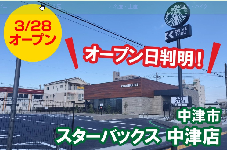 3月28日に 中津市にも スターバックスコーヒー 出来ました。
